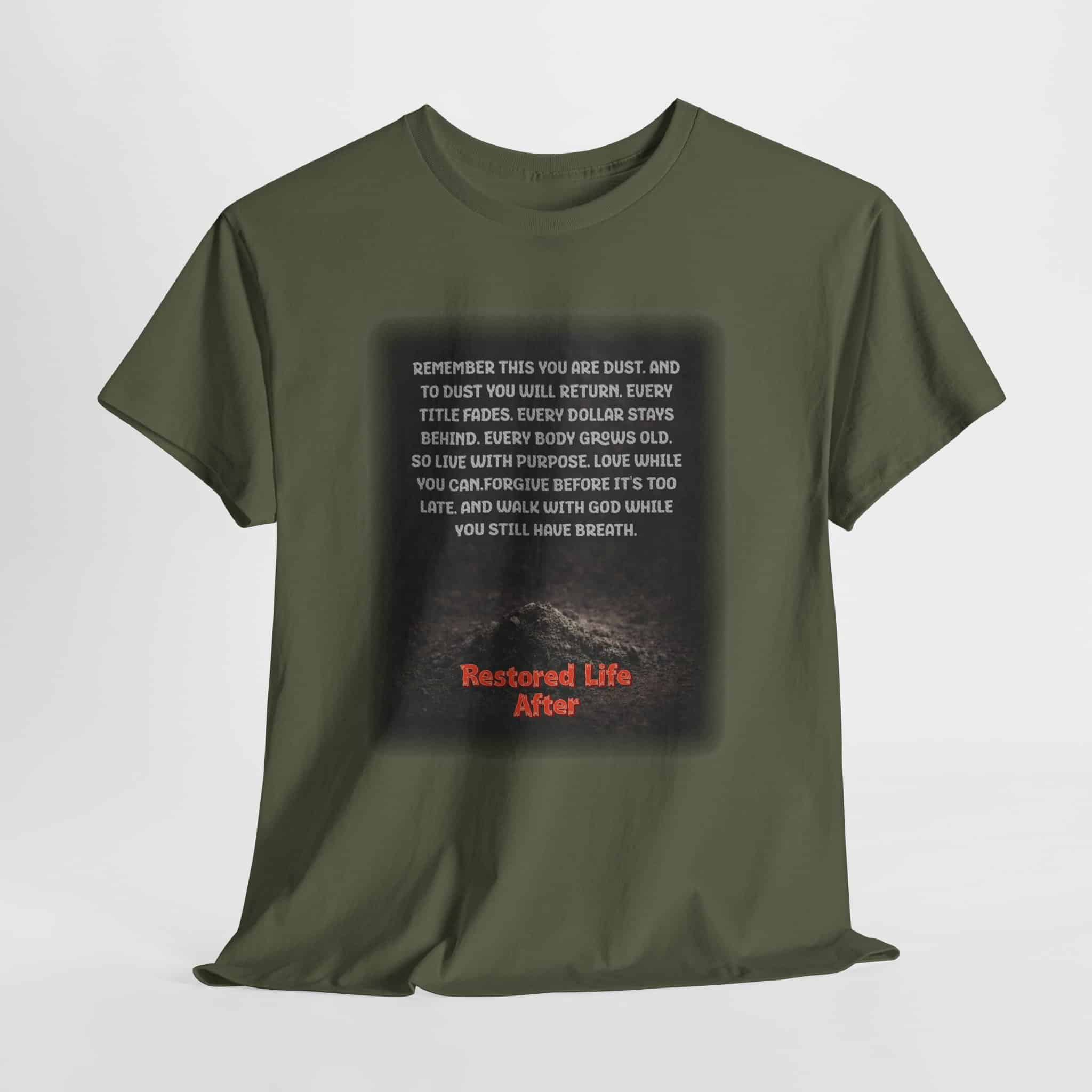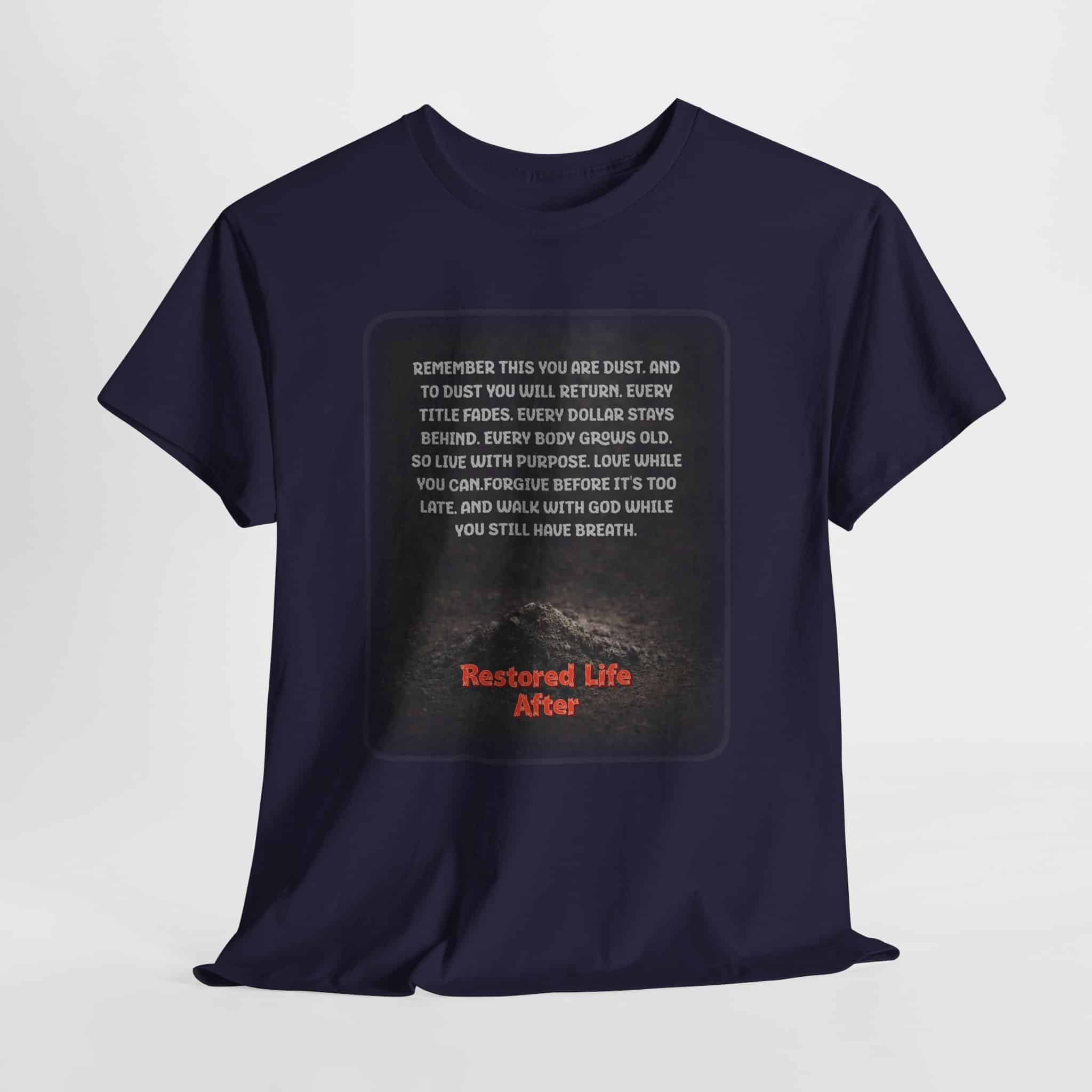 The Restored Life After Tee is designed for anyone who believes in new beginnings and personal growth. Featuring a moody landscape graphic paired with a reflective recovery quote, this inspirational T-shirt carries a quiet yet powerful message about healing, resilience, and moving forward.