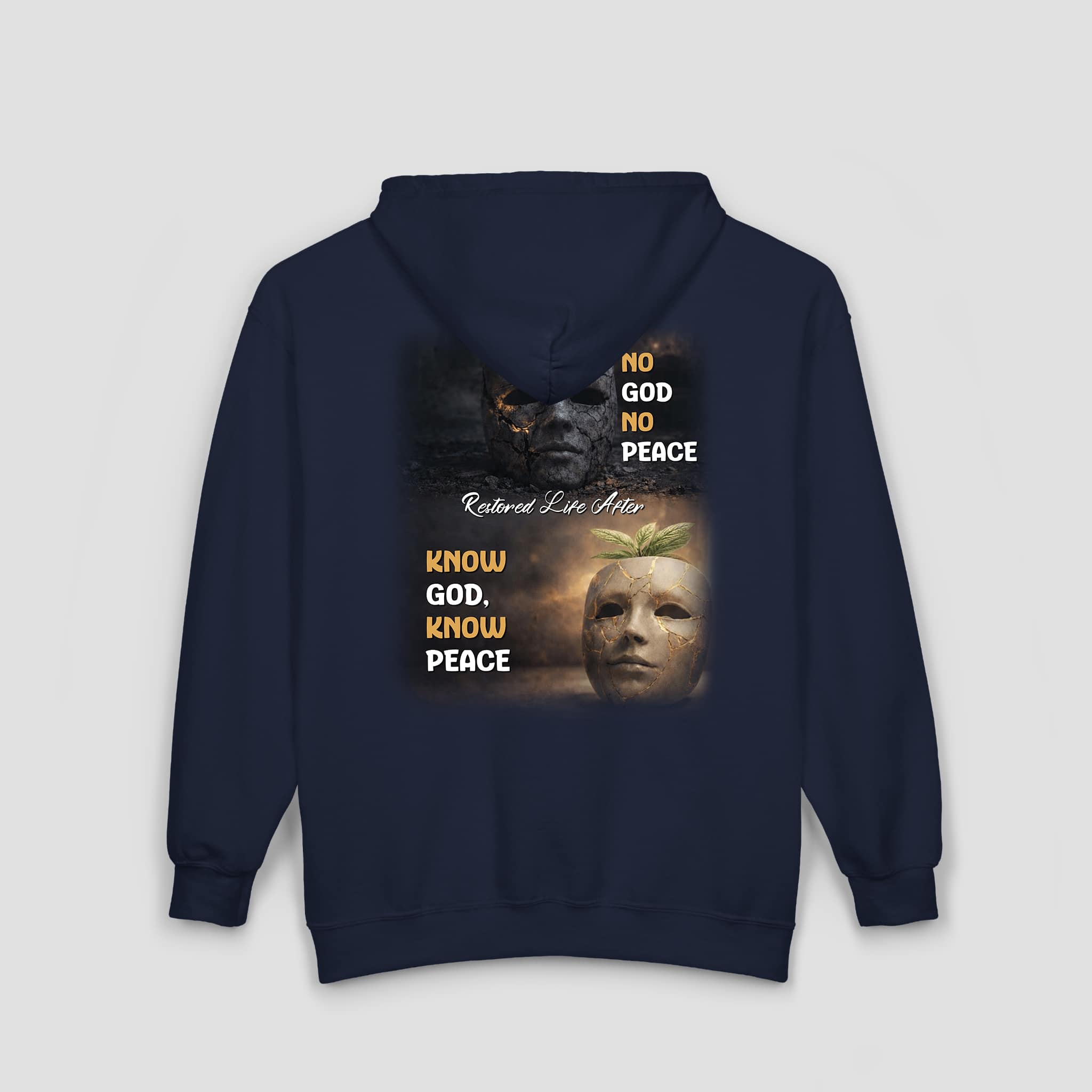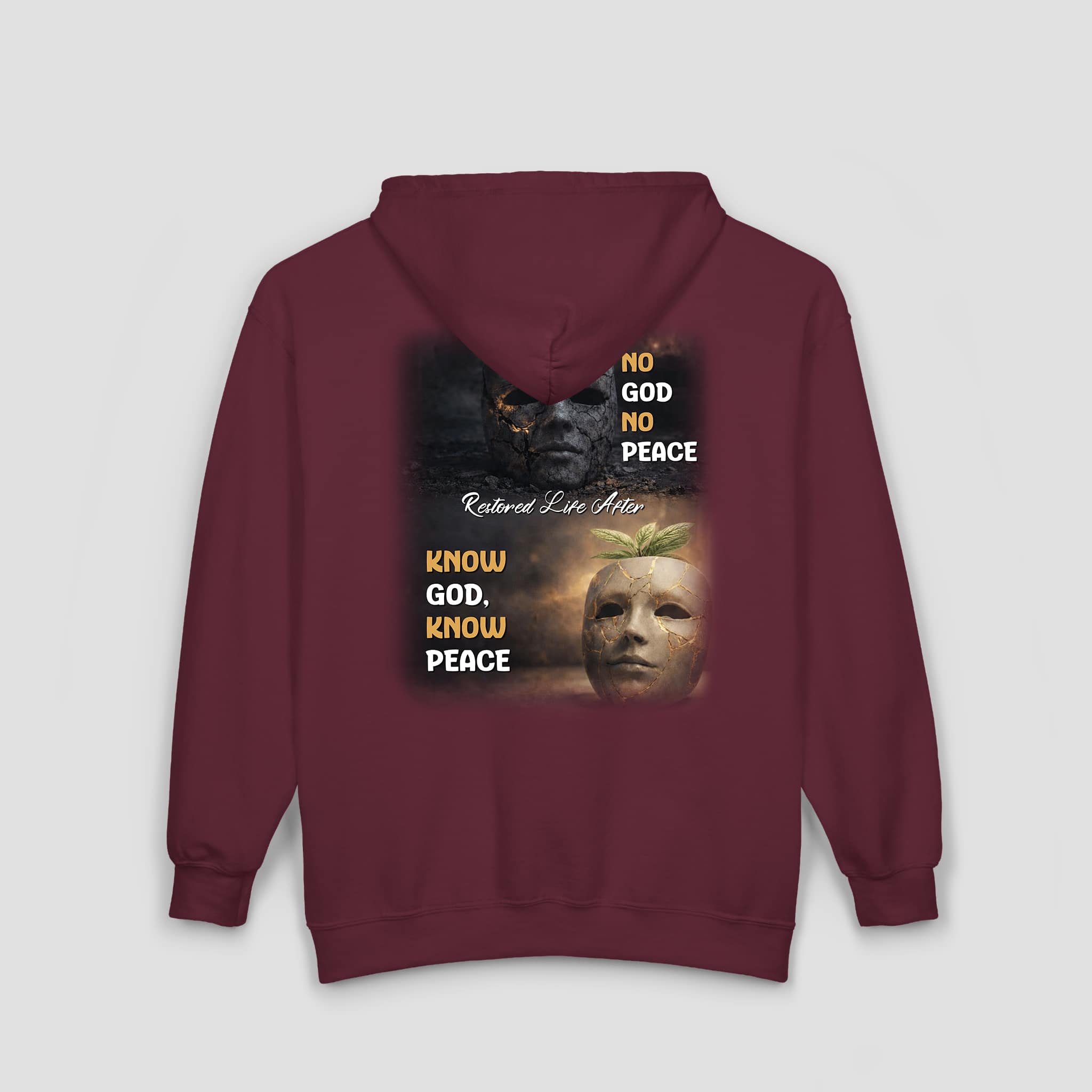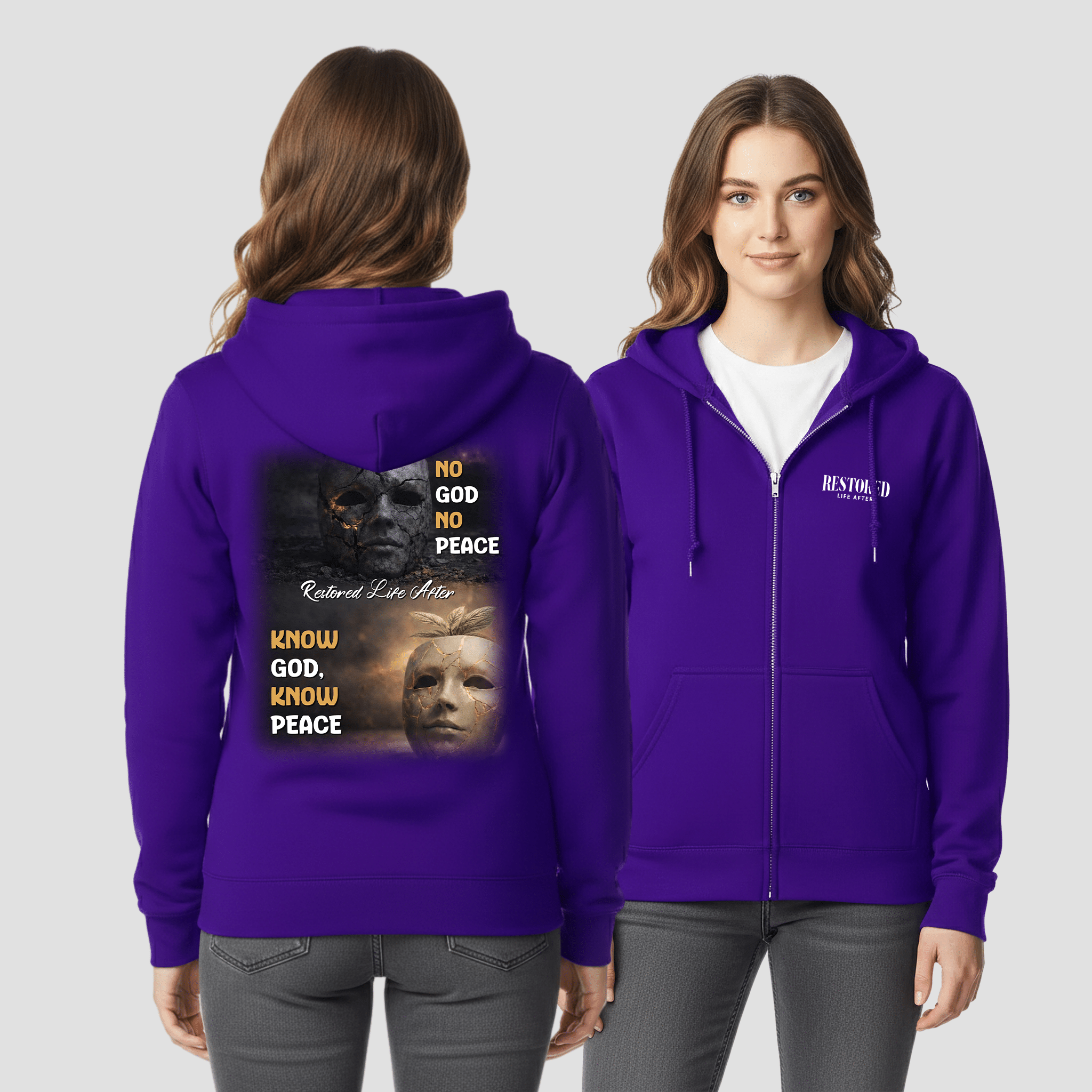 Express your faith with confidence in the Restored Life Ministry Christian Full-Zip Hoodie – Know God Know Peace Sweatshirt. Featuring the powerful message “Know God, Know Peace,” this hoodie reflects the contrast between darkness and light and reminds us where true peace is found. The bold back graphic invites meaningful conversation, while the small embroidered chest logo keeps the front simple and refined.