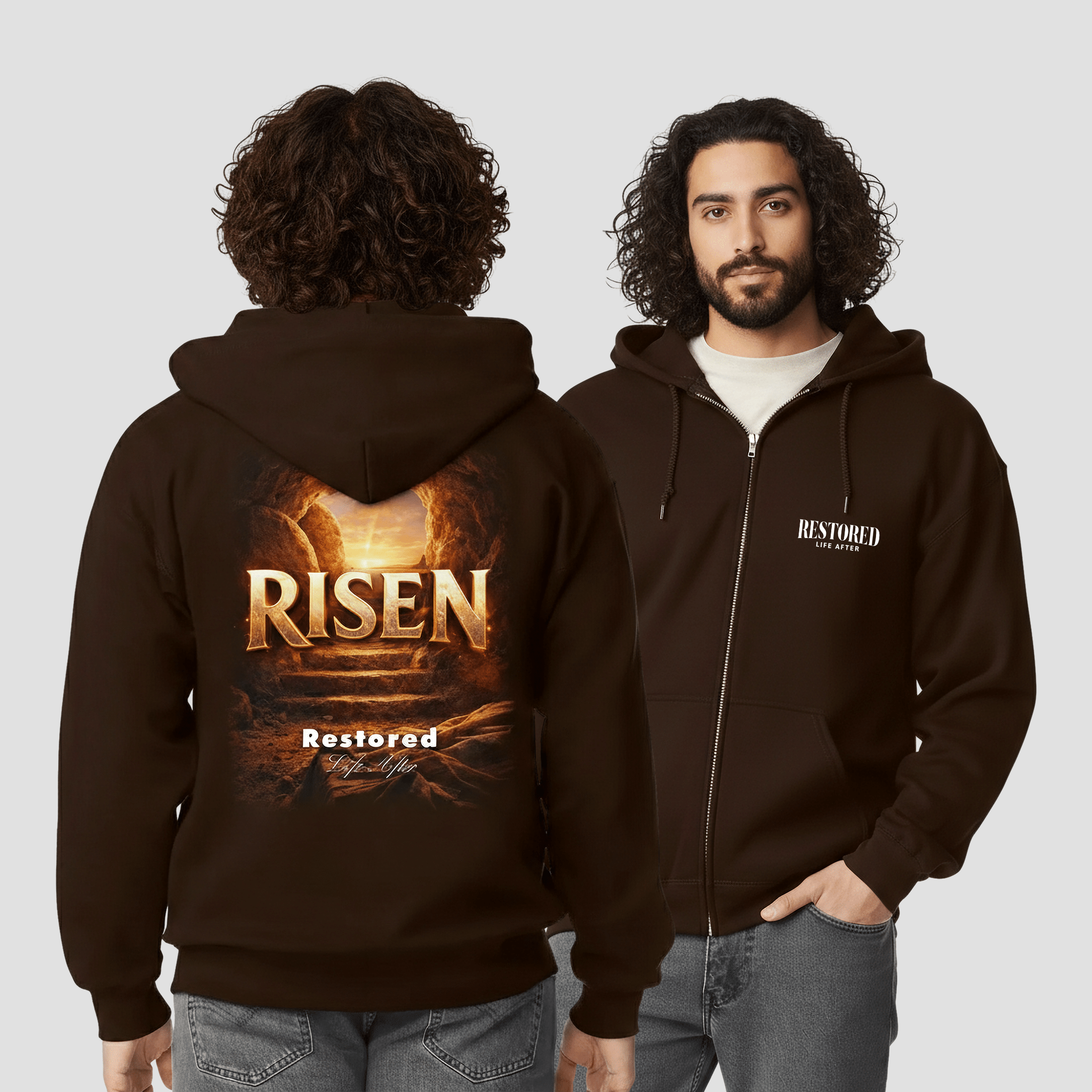 Whether you are purchasing for yourself or looking for a meaningful Christian gift, this Risen Restored zip-up sweatshirt is a timeless reminder of hope, restoration, and new life in Christ.